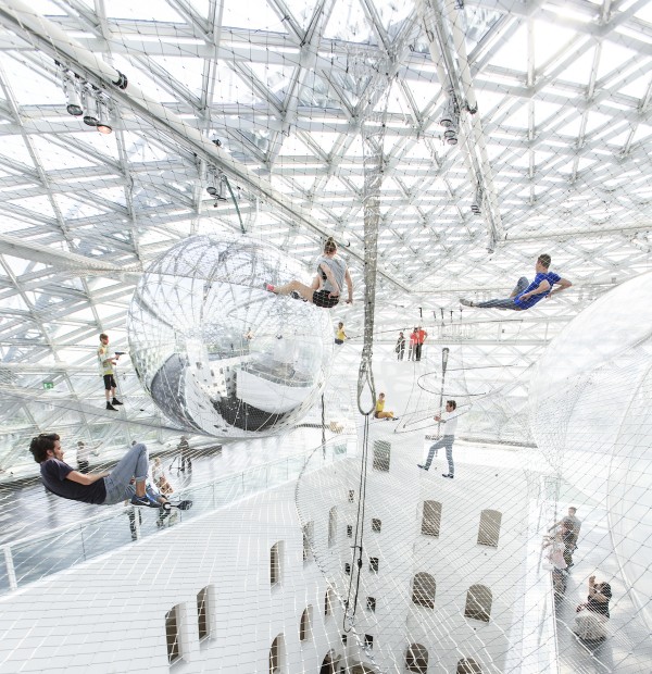 Der Grat zwischen den Dimensionen, die wir kennen und denen, die noch entdeckt werden wollen, ist so schmal, dass bei dem Tanz über das metaphorische Drahtseil schnell der Boden unter den Füßen verloren geht. Genau das ist in der faszinierenden Rauminstallation „in orbit“ des Künstlers Tomás Saraceno gewollt. Die Installation in der gewaltigen Glaskuppe des K21 wird Anfang des Jahres 2017 wiedereröffnet, nachdem „in orbit“ in gleicher Kulisse bereits im vergangenen Jahr ein Besucher-Highlight war. In 20Meter Höhe sind Seilkonstruktionen gespannt, die über begehbare Netze in durchsichtige PVC-Kugeln führen. Der Künstler hat sich bei der Konstruktion a ndem Aufbau eines Spinnennetzes orientiert–und dieses weiter ausgeführt. Mit den Füßen auf dem Boden und doch Luft, das erlebt man nur hier.