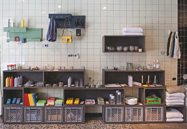 Von außen an der Sonnenmarkise und der schwarz gekachelten Fassade zu erkennen, von innen an den weißen Wandfliesen und der Glasdecke: Das ist „utensil“ in Köln-Ehrenfeld. 2009 eröffnete Anna Lederer ihren Laden mit Designgegenständen in den Räumen einer ehemaligen Metzgerei. In der aufgeräumten, beinahe spröde wirkenden, Einrichtung findet man Industriedesign aus dem Arbeitsalltag verschiedener Kulturen für den Privatgebrauch. Ins Sortiment gehören neben Friesennerzen und Erlenmeyerkolben auch Saunatücher aus dem Hamam, ein thailändischer Essenträger, der an Omas Henkelmann erinnert, oder die orangefarbenen Mülleimer, die an Straßenlaternen hängen. Wer sich die Zeit nimmt genauer hinzuschauen, entdeckt außerdem eine Vielzahl handlicher Klassiker für Küche und Büro.