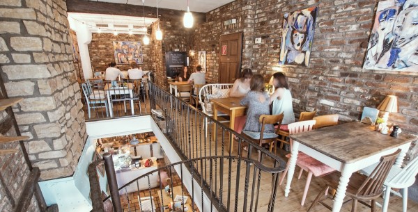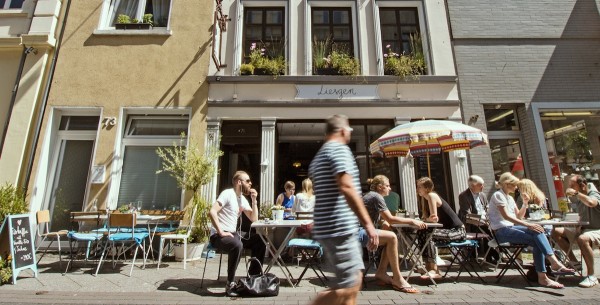 Mitten in der Krefelder Innenstadt, auf der Wiedenhofstraße 71, liegt das Café Liesgen. Der kleine Sehnsuchtsort für Kaffeedurstige erstreckt sich über zwei Etagen. Die Betreiberinnen, Anna und Kathrin, haben sich nach dem Studium (Produktdesign, Krefeld) den Wunsch vom eigenen Café erfüllt. Anna mag Vintage-Kleider und heiße Schokolade. Kathrin mag große Tattoos und Schokokuchen. Beide lieben Handgearbeitetes: Die Ladentheke ist selbst gebaut, die Möbel eigenhändig angepinselt und sämtliche Schilder sind von Hand geschrieben. Serviert wird auf Omas Porzellan. Alles, so sagen die beiden selbst, was es hier zu sehen und zu kaufen gibt, trägt ein Stück Persönlichkeit von ihnen in sich. Täglich gibt es Frisches aus dem Ofen: Kuchen, Brote, Pfannkuchen. Die Speisen sind übrigens vegetarisch, teilweise vegan. Der Kaffee stammt aus einer nahegelegenen Rösterei. Durch wechselnde Kunst-Ausstellungen wird das rustikale Gemäuer immer wieder neu bespielt. Es gibt jedes Mal Neues zu entdecken.