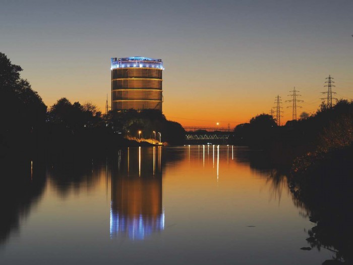 Eine der besten Aussichten über das Ruhrgebiet bieten die Plattformen auf dem Dach des Gasometers Oberhausen. Wer auf seinen 117 Metern Höhe weilt, bewegt sich zwischen den Zeiten, blickt genauso auf rauchende Schlote und das letzte aktive Steinkohle-Bergwerk des Reviers wie auf dessen neue Qualitäten: Weites Grün in Parks und Halden, das moderne Einkaufszentrum CentrO, eine Skihalle, Ausflugsschiffe auf dem Rhein-Herne-Kanal. Mindestens ebenso eindrucksvoll ist das Innere des Gasometers, der bis 1988 Europas größter Scheibengasbehälter war, ein gigantischer Gasspeicher für die umliegenden Hüttenwerke. 1994 wurde er zu Europas höchster Ausstellungshalle zweckentfremdet. Zweimal haben hier bereits Christo und Jeanne-Claude Werkschauen gezeigt. Bis 30. November 2017 findet sich im Gasometer die ganze Welt: Die Ausstellung „Wunder der Natur“ zeigt nicht nur spektakuläre Bilder vom Leben auf unserem Planeten, sondern auch den Planeten selbst. Eine Kugel hängt von der Decke, füllt fast die gesamte Breite aus und wird mit einem aufwändigen Projektionsverfahren so bespielt, dass sie wie eine drehende Erde mit Tag- und Nachtwechseln und Wetterereignissen wirkt. Die sowieso schon aufregende Fahrt mit dem gläsernen Fahrstuhl zur Aufsichtsplattform auf dem Dach wird so zum unvergesslichen Ereignis: Der Besucher fliegt an der Erdkugel vorbei in die Höhe und sieht ein Bild, wie es sich sonst nur Astronauten bietet.